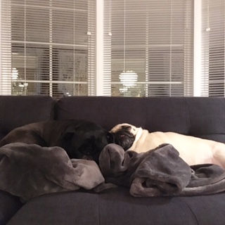 リビングのスピーカーに音を飛ばして爆音鑑賞にもかかわらず、ナナ&ジャズは爆睡です。この日も、みんなに可愛がってもらってよかったネ!