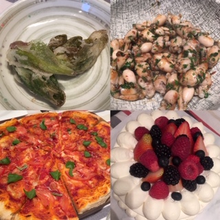 カナッペ2品、きびなごの南蛮漬け、ホタルイカのサラダ、スモークサーモンのサラダ、フキノトウの天ぷら、カエルのソテー、ホームメイド・ピザ、バースデー・ケーキだったかな。16時~12時前までずっと食べて、飲んで、おしゃべりして、とても楽しい時間になりました。