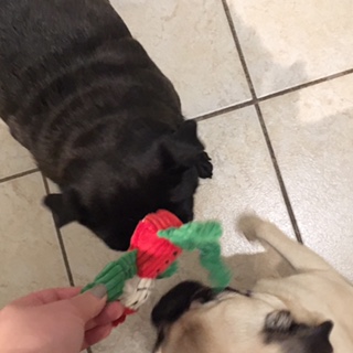 パックリーダーとして一通りの検証が終了すると、今度は飼い主におもちゃを持ってやってきます。
