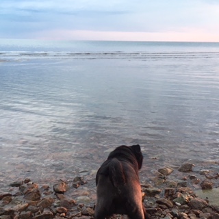 おパグさんが毎朝トイレに起こしてくれるお陰で、飼い主も毎朝ビーチで日の出を見ることができましたョ。