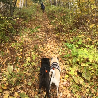 コテージ近くにドッグフレンドリーなトレイルがあるのをネットで見つけ、さっそく6人+3わんこでやってきましたョ。(