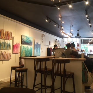 ここはドッグカフェではなく「ドッグフレンドリー・カフェ」ですから、ジャズが椅子にジャンプしようとするのを阻止しなければいけません。(自宅では飼い主と一緒にダイニングテーブルに着席するジャズミンです。)それ以外は吠えることもなく、ナナ&ジャズ共にお行儀よく待機することができたと思います。