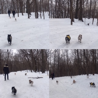 ナナ&ジャズは、自宅バックヤードの雪の中ではほぼ遊ばないくせに(トイレを済ませるとすぐ戻ってきます)、他のわんちゃんが一緒だと本当に楽しそうに雪のトレイルを走ります。