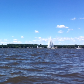 この日はオトモダチと一緒に、セントローレンス川をカヤックで横断します。