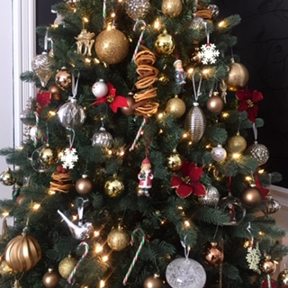 今年のツリーは、ゴールド・シルバー・ホワイトをメインにし、赤や緑のカラーを少しだけ入れています。