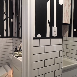 ここで使用したタイルも壁紙も、パウダールームのリノベーションで余ったものを利用したため、実質かかった費用は新しいシンクと蛇口のみ!(