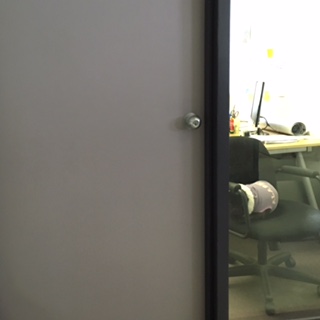 飼い主が部屋を離れると、ドア側のガラス越しよりチェックに勤しみます。