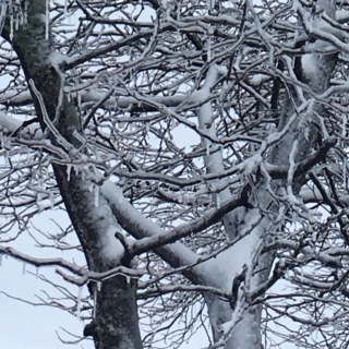 樹氷が広がるこの時期の景色は、お散歩中も見ていて飽きません。こちらの人はクリスタル・ツリーと呼んだりします。