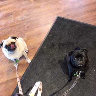 うるさいビーグルさん2匹が診察室から出てきたのです。彼らもお会計を済ませるため、ずっとナナ&ジャズの背後に待機します。