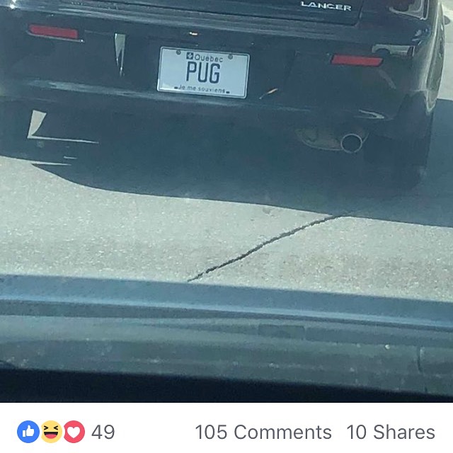 「DOGMOM」がアップロードされた日には1Like(0コメント)だったのに対し、「PUG」がアップロードされるやいなや、飼い主もメンバーである「Les Pugs du Quebec」のFBサイトでシェアされ、100件以上のコメントが!パグ飼いさん、恐ろしや・・・。