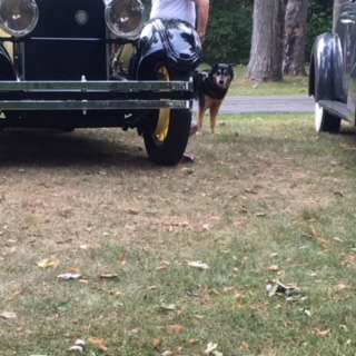 クラシックカー集合イベントのせいか?公園にはいつもよりわんちゃん連れが多く、お散歩中のナナさんはテンションが上がりまくりです。ナナさんは「みんなにご挨拶したい派」ですから。