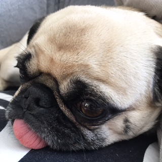 舌のほとんどが口の中に収まっているはずが、歯と歯の間から少しだけ舌が出ています。