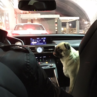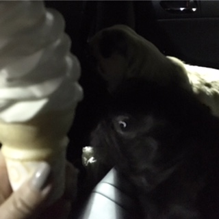 ドライブ&アイスクリーム好きなおパグさんたちのため、サブ飼い主さんはよくドライブスルーにナナ&ジャズを連れ出します。そのせいか、2人とも「コルネ」(フランス語でアイスクリームコーン)という単語にものすごく反応します。