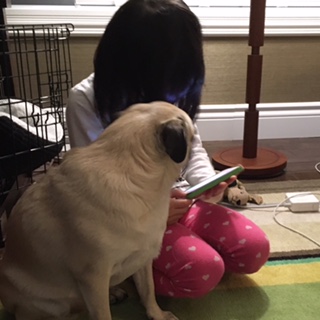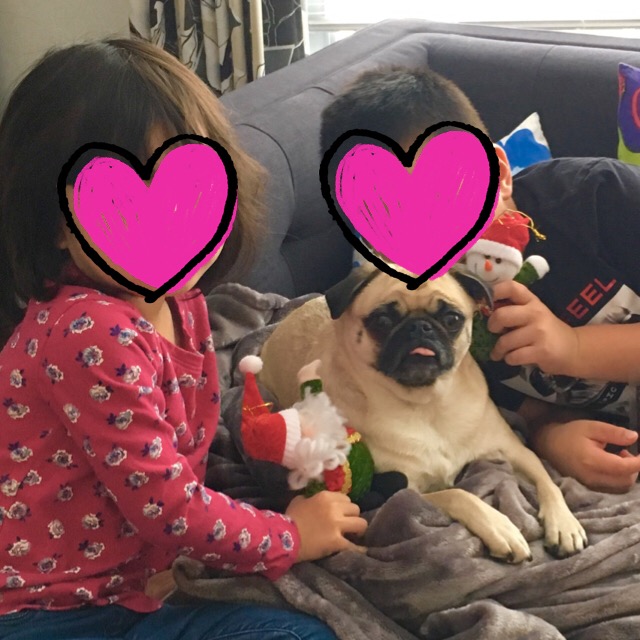 ナナさんは一切吠えることもない&とても忍耐強いので、子供たちの相手にはぴったりパグです。変なポーズで抱っこされようとも、尻尾を掴まれようとも、大人しく我慢してくれますョ。
