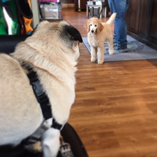 つい先日。お散歩中にナナさんが(ジャズと飼い主の進行方向へ)歩くことを拒否したため、リーシュを「おいで、おいで」と引っ張りました。すると、ナナさんのハーネスがするっと抜け、まさかの逃走劇に Σ(゚д゚lll)ガーン