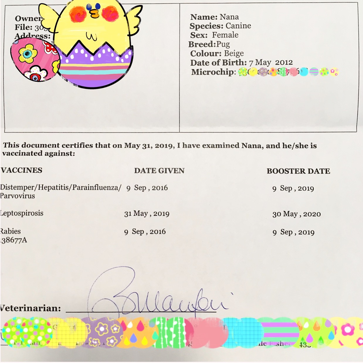 血液検査とレプトスピラ症予防接種が目的です。血液検査はマダニ&フィラリアのため、2年に一度受けるようにしています。