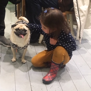 移転後の問題点を上げるとすると、カフェ近くの公園が犬禁止だという事実かな。入店前のわんこトイレには、かなり歩き回らねばいけません。