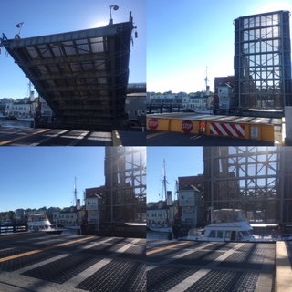 1時間に1度(毎時40分)鳴り響く警報音を聞いてからホテルの部屋を出発しても、Bascule Bridgeの開閉に間に合います。(橋が上がる様子は、ホテルの窓からも見ることができました)