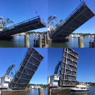 橋が開放されるのを縦列で待っていたボートが、順番に通過して行きますョ。