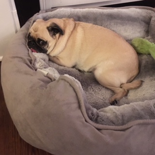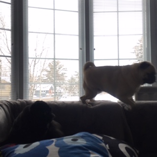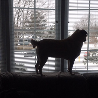 雪でお散歩に出かけられない毎日は飽きてきましたョ。早く春になって、おパグさんの森散歩を復活させたいなぁ。