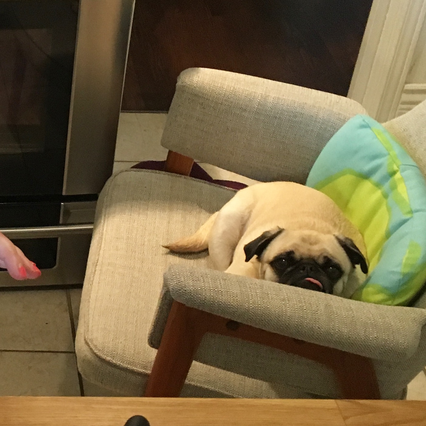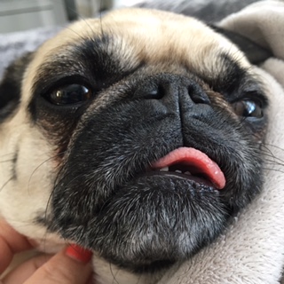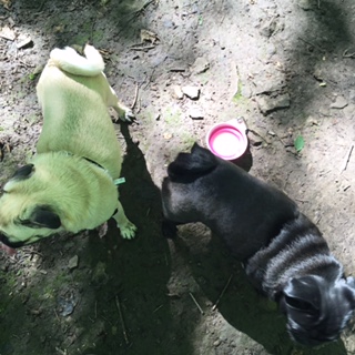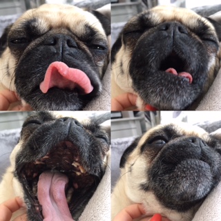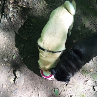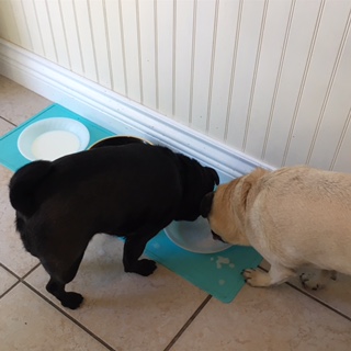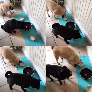 が、ボウルに入ったヤギミルクをくんくんするものの、一切手をつけないおパグさん。