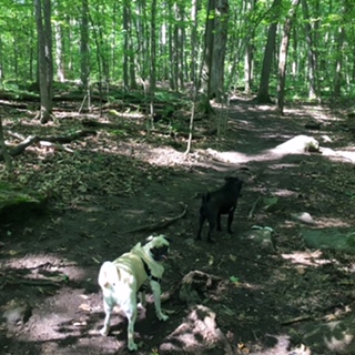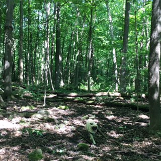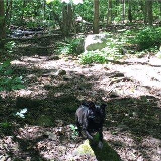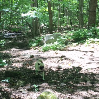 振り返りつつきちんと飼い主を待ってくれるので、森では自由にさせています。