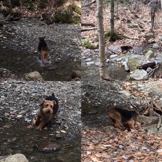 水が大好きなYogiは、自ら率先して川へ入っていきますョ。水しぶきをあげて勢いよく駆け回り、本当に楽しそう。