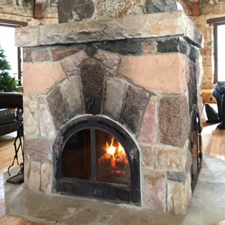 お部屋の真ん中には大きな暖炉を囲むようにソファがあり、とても暖まりました。