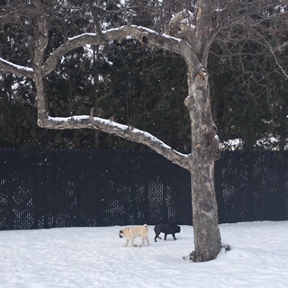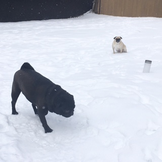 ナナ&ジャズは長時間雪の中を歩いてくれないので、こういう専用キャリアに入れてあげればよいのかも?(後ろのキャリアにはベイビーが乗っています)しかし、我が家にこのようなグッズは持ち合わせておりませんので、もう少し暖かくなってからおパグさんたちを連れてきてあげる予定です。